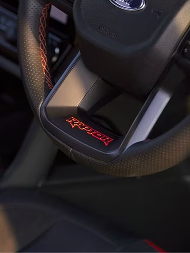Lấy cảm hứng từ giải đua xe địa hình danh tiếng Baja Racing, ghế ngồi xe Raptor có thiết kế ôm trọn người lái, giúp lái xe có tư thế chắc chắn khi ôm cua hoặc tiếp đất. Các đường chỉ khâu độc đáo và kết hợp với da lộn giúp tối ưu sự thoải mái và tăng tính thẩm mỹ.