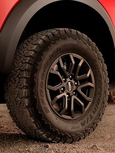 Bộ la-zăng hợp kim 17 inch hầm hố dành cho đường địa hình lắp với lốp xe BF GoodRich All-Terrain K02 hiệu năng cao danh tiếng (kích thước 285/70 R17). Dù vượt núi đồi hay chạy tốc độ cao, đều đáp ứng trong mọi điều kiện..